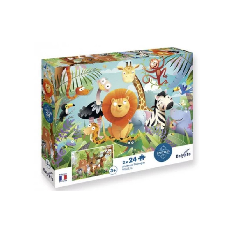 Découvrez le coffret Puzzles Animaux sauvages de la collection Calypto de Sentosphère, un joli coffret comprenant 2 puzzles de 24 pièces en carton, fabriqués en France, pour les enfants dès 3 ans.