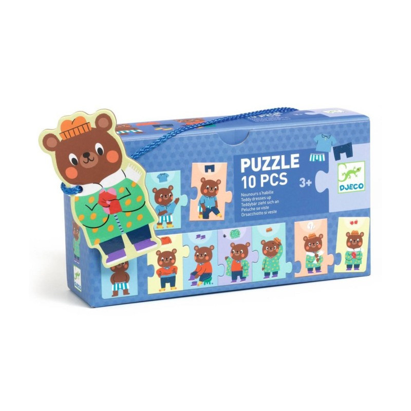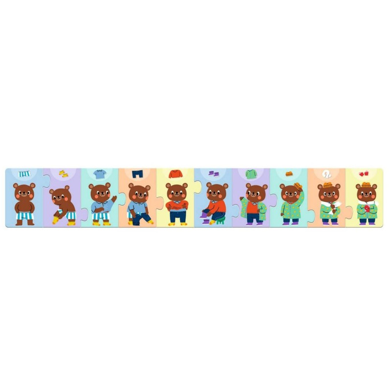 Découvrez le puzzle frise Nounours s'habille de Djeco, un puzzle éducatif de 10 pièces pour les enfants dès 3 ans, qui allie apprentissage et plaisir.