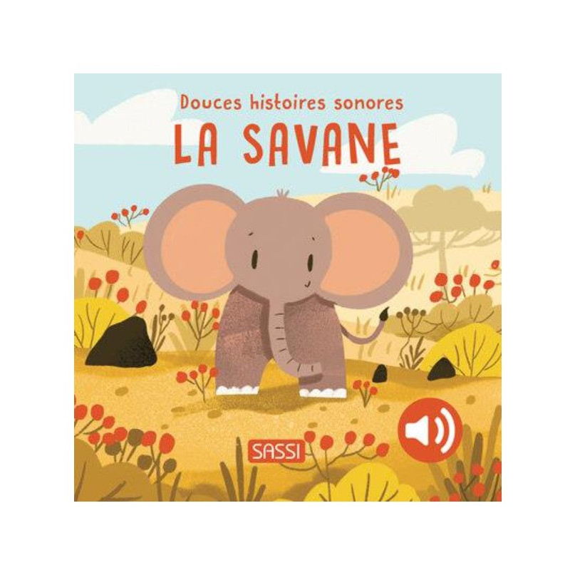 Découvrez le livre "Douces histoires sonores: La savane" de Sassi, un livre enchanté aux illustrations tendres accompagné de six sons naturels apaisants. Aucun bouton à presser, tournez simplement la page pour que les sons s'éveillent !