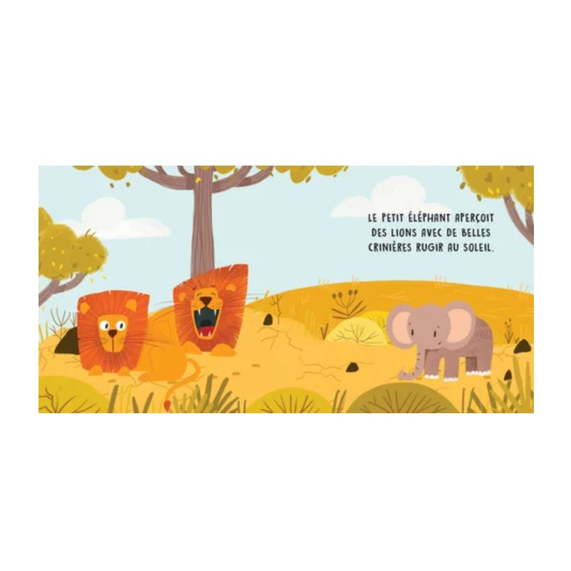 Quels sont les animaux qui vivent dans la savane ? Découvre, avec le petit éléphant, quelques-unes des créatures qui vivent dans cet habitat en écoutant les sons qu'elles émettent.