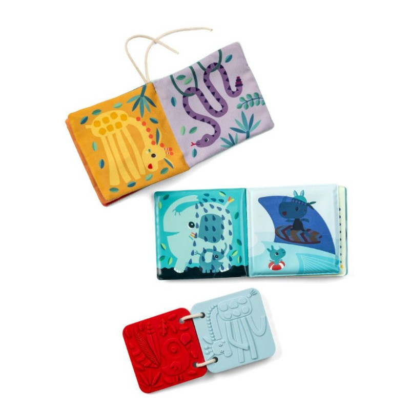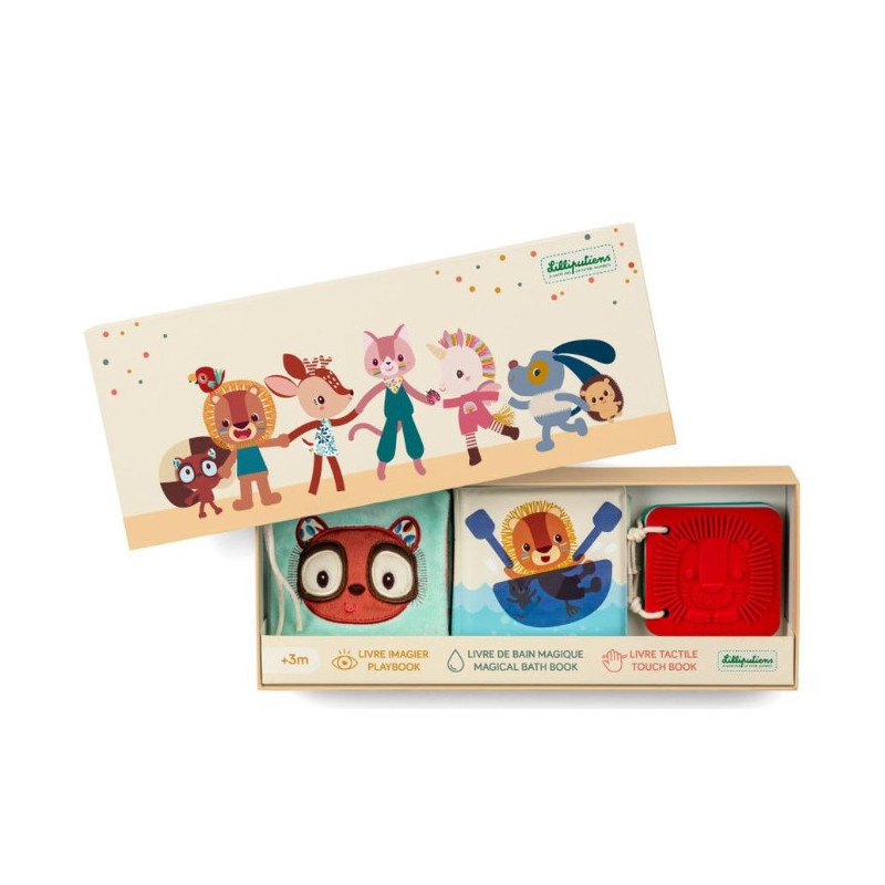 Découvrez le set de 3 livres sensoriels pour bébé jungle de la marque Lilliputiens. Ces 3 livres proposent à votre enfant 3 histoires différentes. Ces histoires mettent en scène les personnages Lilliputiens.