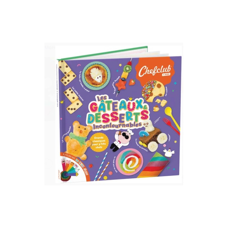 Voici le Livre Kids - Les gâteaux et desserts incontournables de Clubchef kids pour p’tits chefs ! Des recettes simples et délicieuses avec des décors extraordinaires ! Fondant au chocolat, crêpes, madeleines, cookies, riz au lait et bien plus encore.