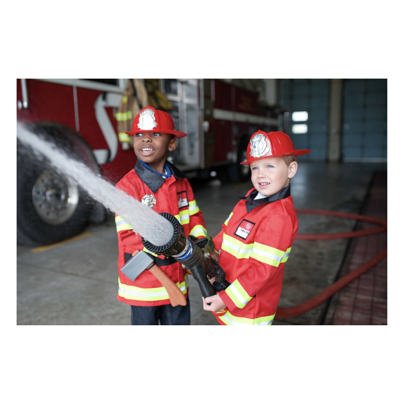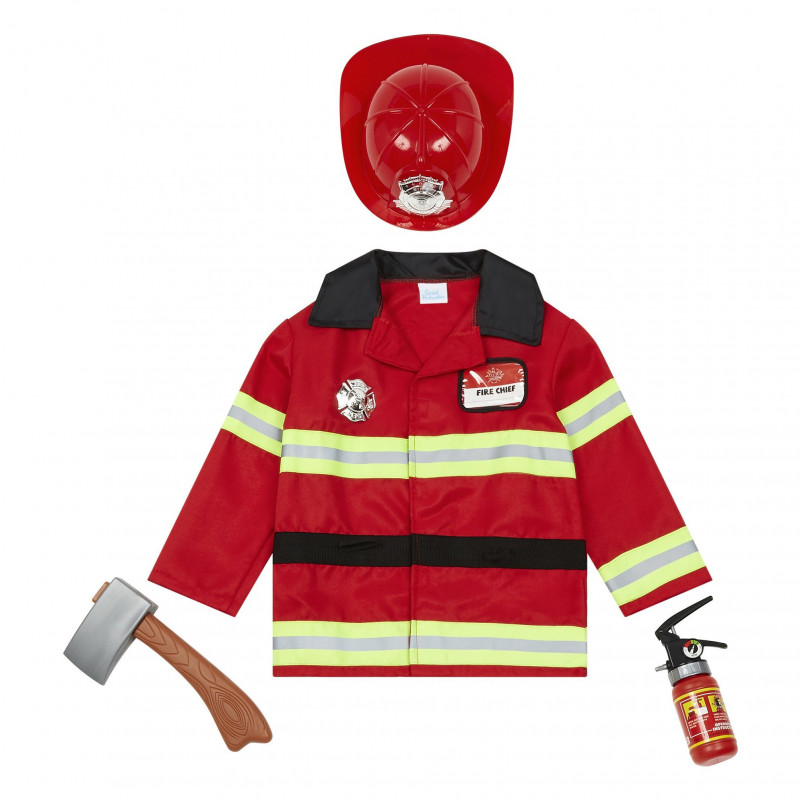 Ce kit Pompier contient 1 manteau, 1 casque, 1 hache, 1 extincteur et 1 badge