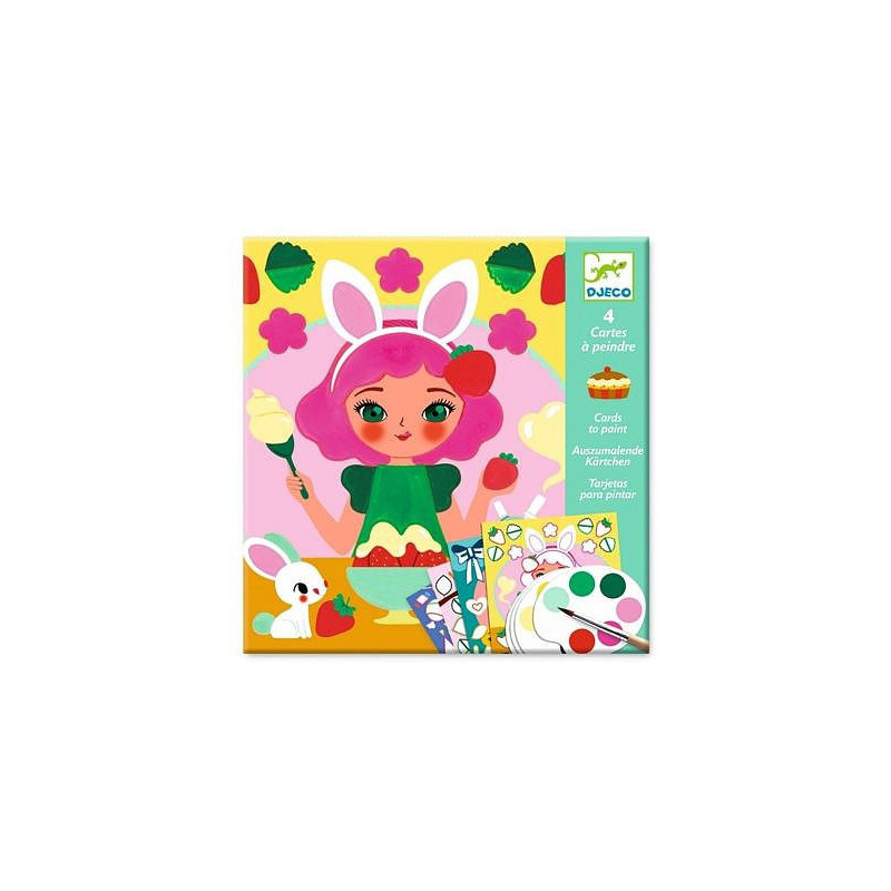 Découvrez les cartes à peindre Le goûter de Djeco, un loisir créatif ludique et original autour de la peinture. Une activité manuelle pour les enfants à partir de 6 ans. Prenez votre carte et la palette de peinture correspondante et peignez votre tableau. Chaque carte a sa palette avec juste la quantité de peinture nécessaire pour réaliser son tableau.