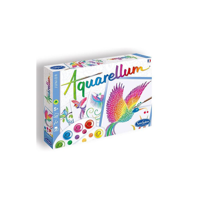 Découvre Aquarellum Junior Oiseaux paradis de Sentosphère et grâce à cet atelier créatif et à ses encres aquarelles, amusez-vous à rehausser de couleurs, sans pouvoir dépasser, ces quatre oiseaux du Paradis !