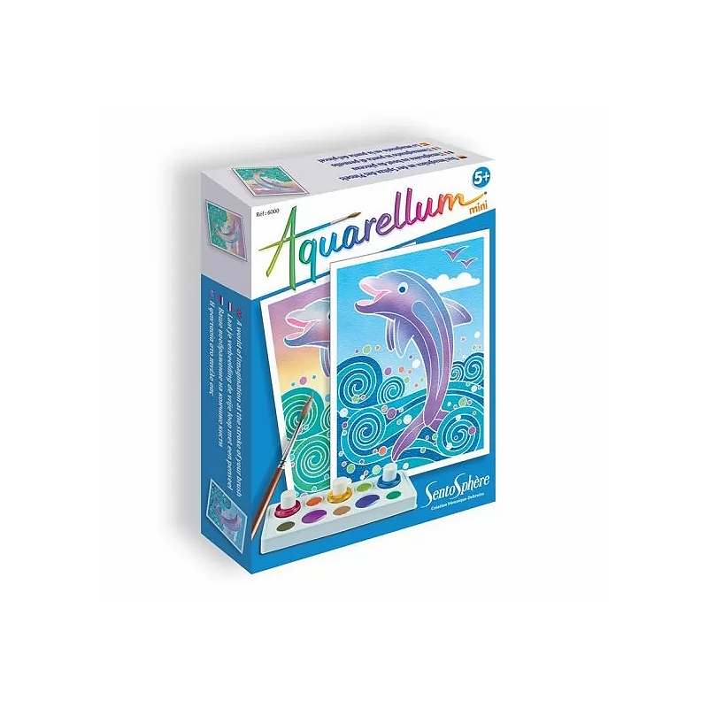 Découvrez Aquarellum Mini Dauphins de Sentosphère : grâce à ce mini coffret créatif, découvrez l’art de la peinture aquarelle en rehaussant de couleurs, sans pouvoir dépasser, ces deux mini illustrations de dauphins.