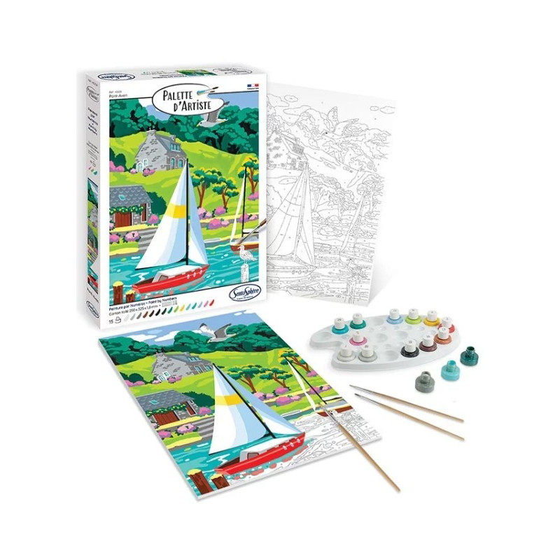 Suivez les numéros sur la toile et donnez vie à cette palette d'artiste Pont-Aven de Sentosphère pour voir votre œuvre prendre forme sous vos yeux !