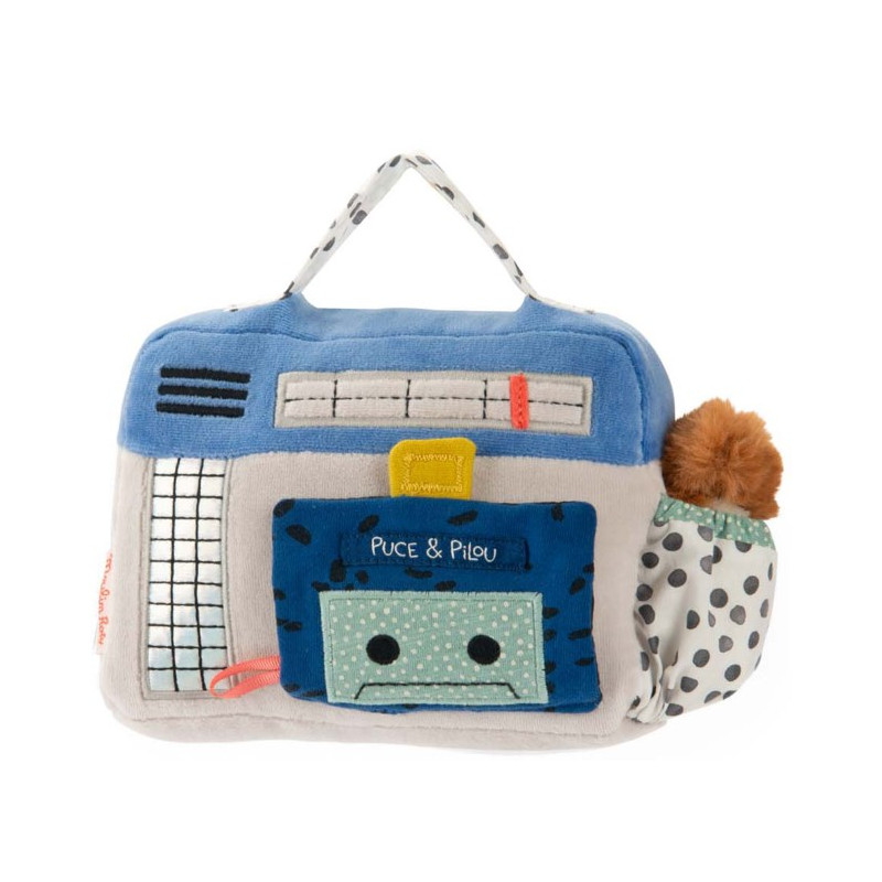 Découvrez le Radio cassette musical de la collection Puce & Pilou de Moulin Roty, une superbe peluche musicale en forme de radio cassette, qui aidera bébé à s'endormir paisiblement grâce à sa douce berceuse.