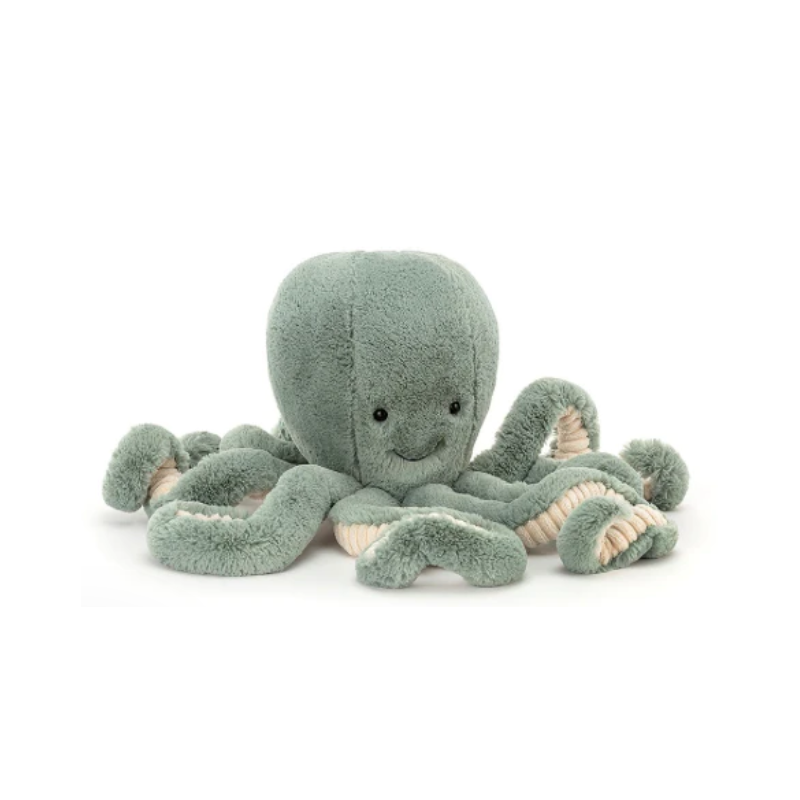 Une adorable et douce petite pieuvre Odyssey de Jellycat qui accompagnera bébé dans toutes ses aventures et moments câlins. Un cadeau idéal pour une naissance.