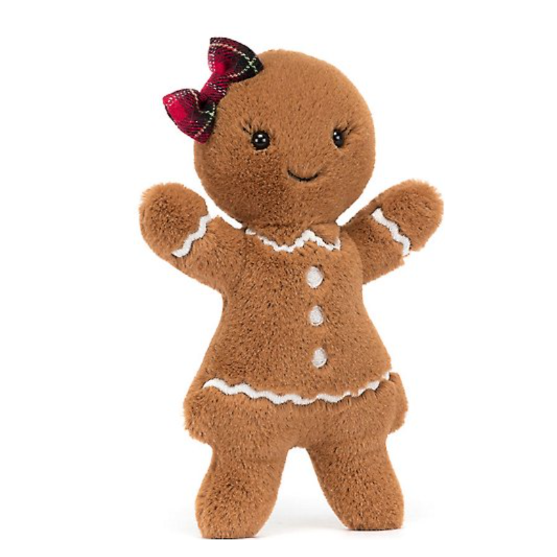 La peluche Jolly pain d’épice rubis de Jellycat a hâte d’être à Noël ! Elle est toute glamour dans une robe de glaçage cousue et sa fourrure douillette est cuite à la perfection. Avec ses cils brodés et son nœud dans les cheveux en tartan, et ses bras en biscuit en l’air, Ruby brille !