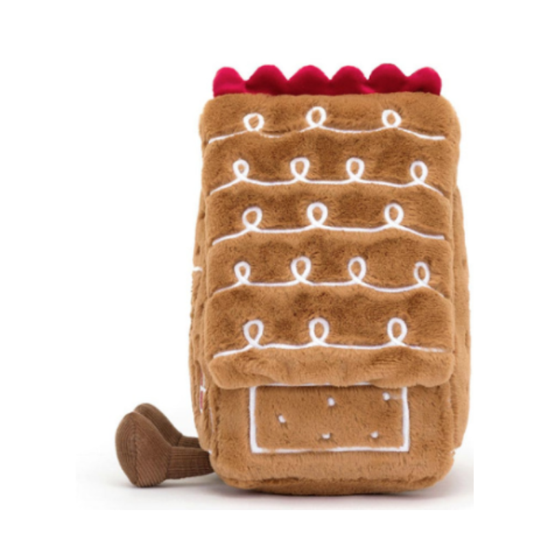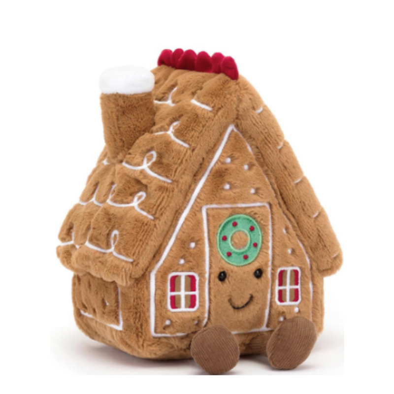 Découvrez la peluche maison en pain d'épice de la collection Amuseables de Jellycat, une adorable peluche sur le thème de Noël.