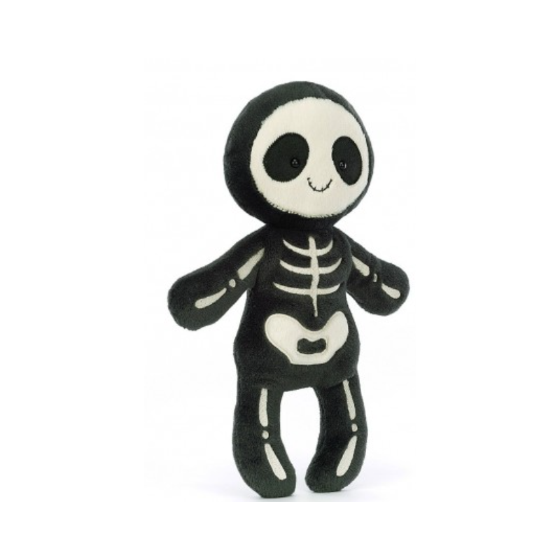 Voici la peluche squelette Bob de Jellycat! Bob a une fourrure réglisse avec beaucoup d'os pelucheux. Ses yeux en suédine ont des bords brodés et de minuscules pupilles brillantes. Ce joyeux squelette cliquette, sans personne pour l'arrêter!