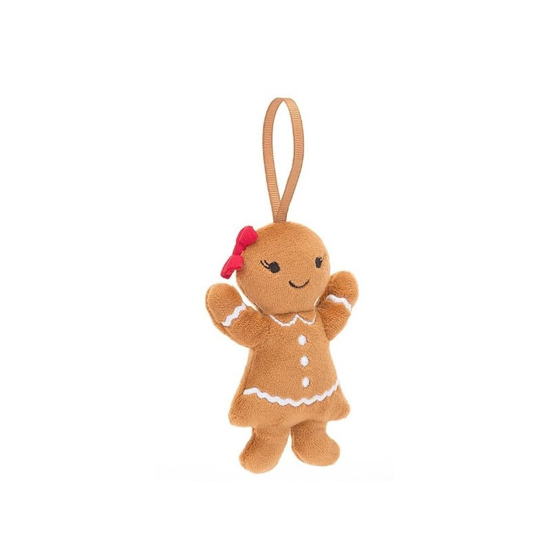 Découvrez la peluche Ruby le pain d'épice Festive Folly de la collection Amuseables de Jellycat, une peluche de 16 cm sur le thème de Noël.