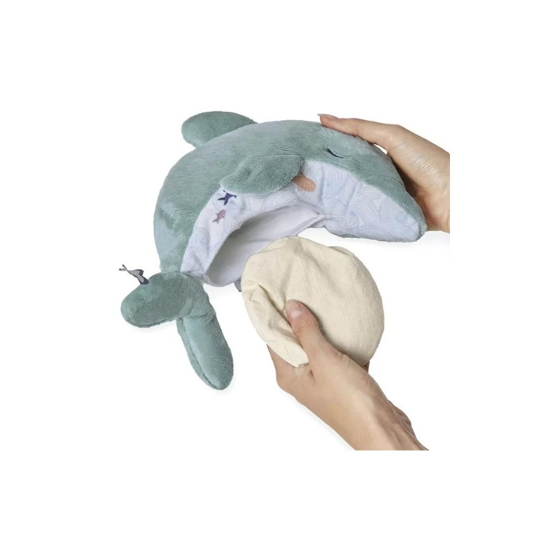La lavande aide à l'endormissement grâce à ses propriétés calmantes et apaisantes, ce qui est un vrai plus, pour bébé comme pour ses parents. Vous pouvez aussi proposer ce dauphin en peluche à bébé lors de vos sorties en extérieur, pour lui apporter confort et chaleur pendant sa balade. Le mode d'emploi est inclus à l'intérieur de la peluche. Dimensions : 23x24 cm. Lavable en machine à 30° après retrait de la poche.