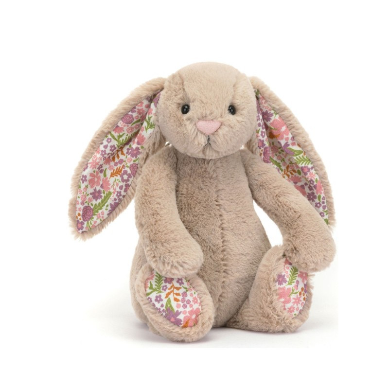 Voici la Peluche Bashful Lapin en fleurs Beige (18 cm) de Jellycat, Ce charmant lapin en peluche de 18 cm deviendra rapidement le compagnon préféré de votre enfant. Avec ses longues oreilles en tissu fleuri et sa fourrure beige toute douce, il est parfait pour les câlins et pour accompagner bébé dans ses rêves les plus tendres.