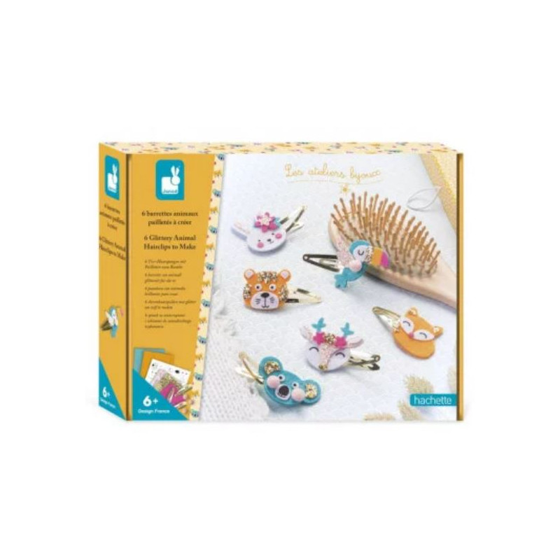 Découvrez le coffret Barrettes animaux pailletés à créer de la collection Les ateliers bijoux de Janod, un coffret créatif permettant aux enfants, dès 6 ans, de confectionner leurs propres barrettes à cheveux facilement.