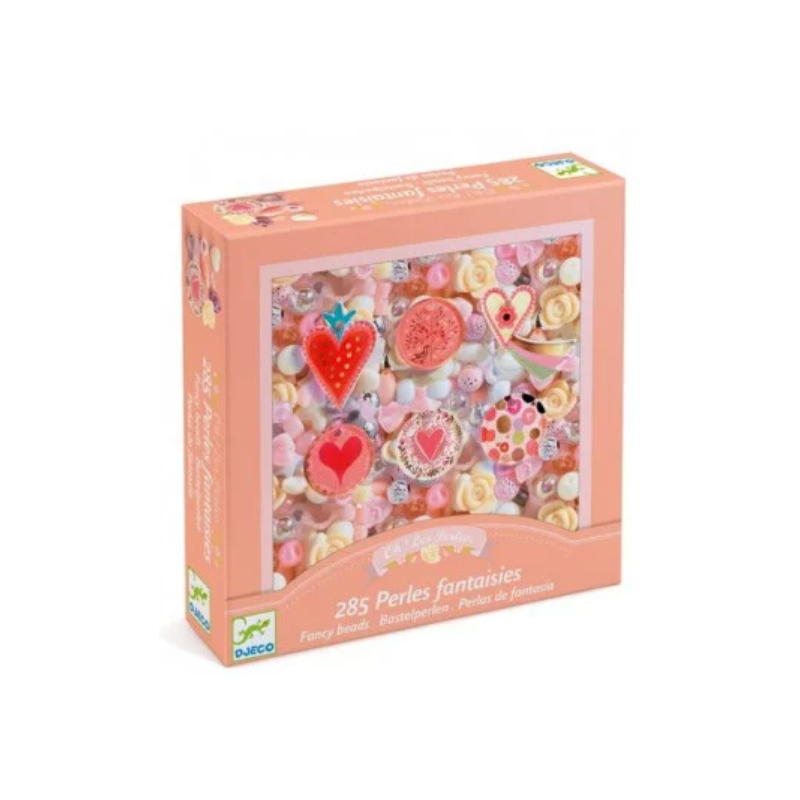 Découvrez les perles fantaisies Coeur de Djeco, 285 perles fantaisies pour réaliser des bijoux pour les enfants de 6 à 10 ans. Une abondance de perles différentes et des pendentifs illustrés sur le thème des coeurs, pour créer en toute liberté de jolis bijoux.