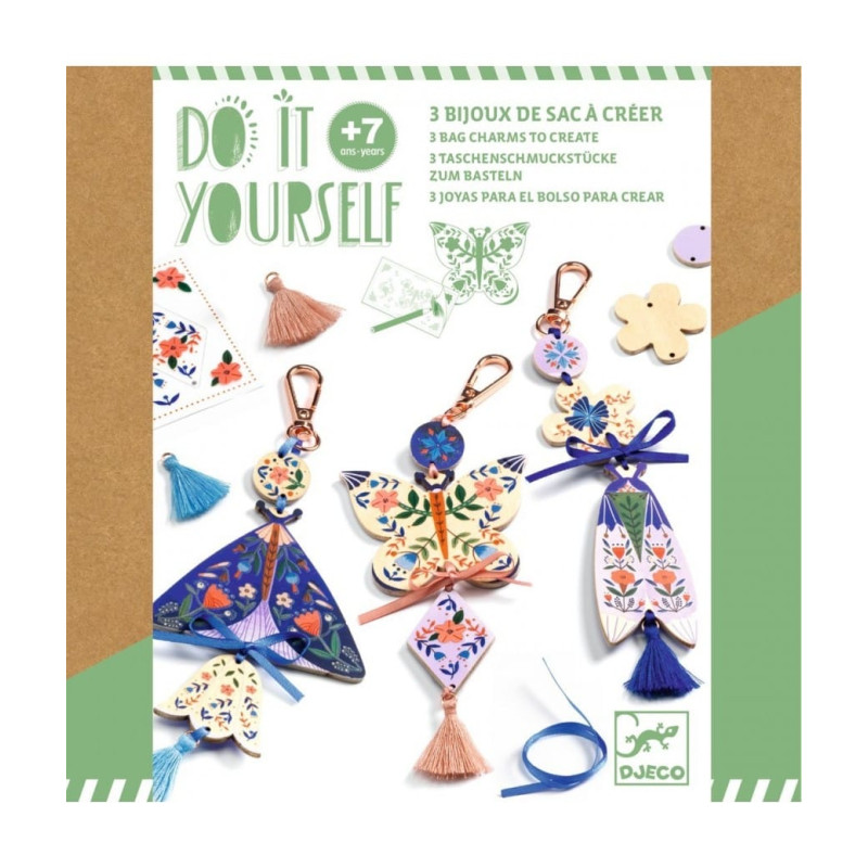 Découvrez le coffret Bijoux de sac à créer Butterflies de la collection Do It Yourself de Djeco, une activité créative pour les enfants à partir de 7 ans, qui réaliseront 3 magnifiques bijoux en bois à l'aide de décalcomanies et d'accessoires.