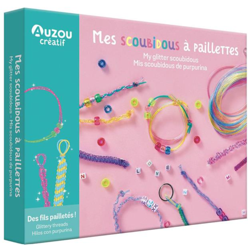 Découvrez Mon coffret d'artiste mes scoubidous à paillettes de Auzou, une activité créative pour réaliser de nombreux bracelets scoubidous pailletés à partir de 6 ans.