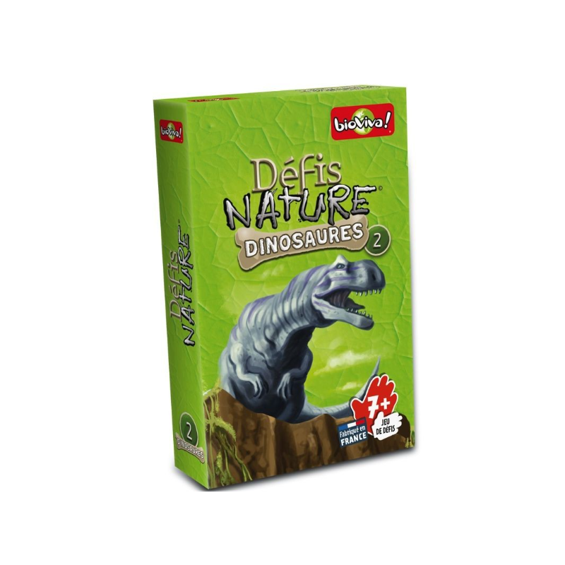 Cette nouvelle version de Défis Nature - Dinosaures 2 de Bioviva vous emmène à la rencontre des dinosaures les plus surprenants ! Découvrez les espèces disparues, puis pariez sur les points forts de vos animaux pour collecter toutes les cartes du jeu et remporter la partie. Alors, prêts à relever le défi ?