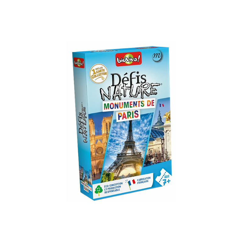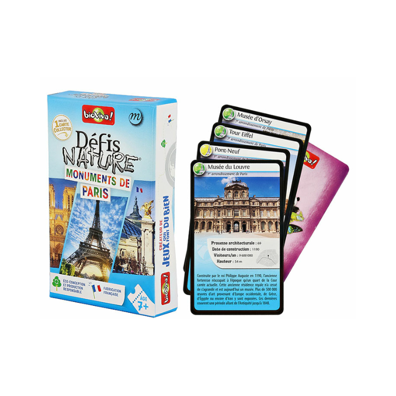 Découvrez Défis nature Monuments de Paris de Bioviva, un jeu de cartes éducatif pour les enfants dès 7 ans, qui vous vous emmène à la découverte des monuments de Paris !