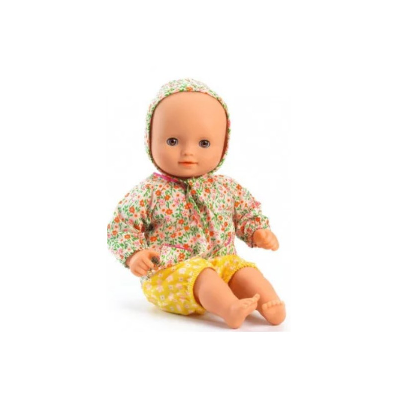 Découvrez la Poupée baby Flora de Djeco, une poupée au corps souple de la gamme Pomea pour les enfants à partir de 18 mois habillée d'une tenue Petit Pan