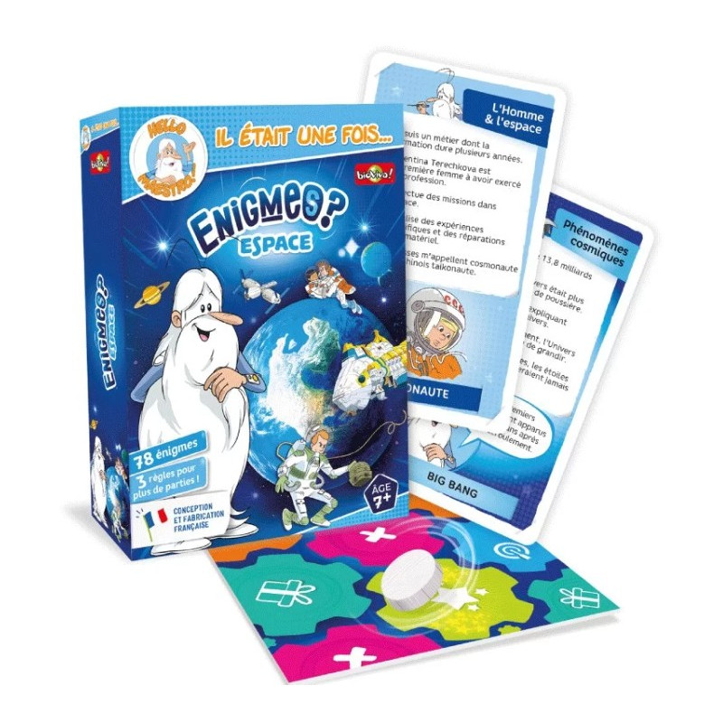Avec Il était une fois… Enigmes - Espace de Bioviva!, tentez d’être le plus rapide à deviner les objets célestes et découvertes spatiales qui se cachent derrière 5 indices instructifs et amusants. Faites preuve d’adresse en lançant le jeton sur le plateau pour tenter de gagner plus de cartes Il était une fois… Enigmes - Espace !