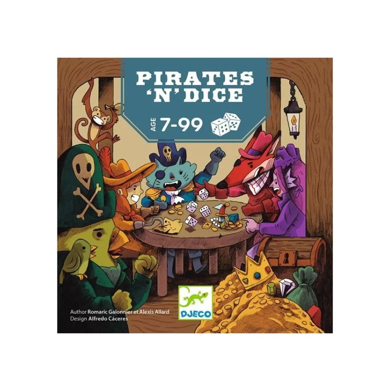 Découvrez Pirates'n'Dice de Djeco, un jeu de dés et de paris pour jouer en famille ou entre amis dès 7 ans. Un jeu de société sur le thème des pirates, dans lequel les joueurs lancent des dés pour gagner des pièces d’or.
