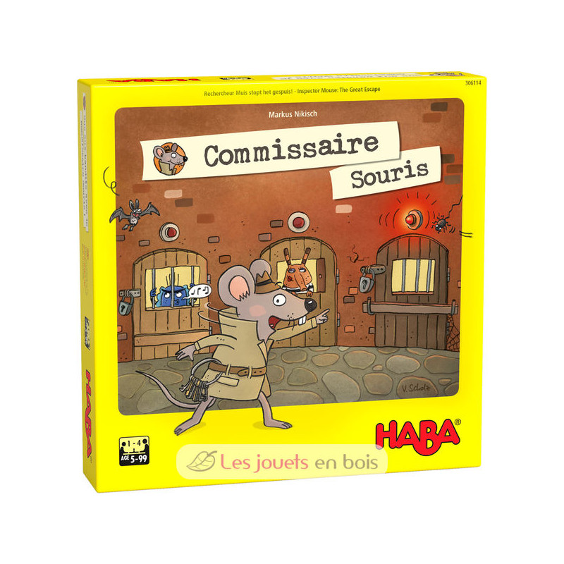 Découvrez le jeu Commissaire souris de Haba, un jeu de mémoire et de paris semi-coopératif à faire tourner la tête pour 1 à 4 joueurs à partir de 5 ans.