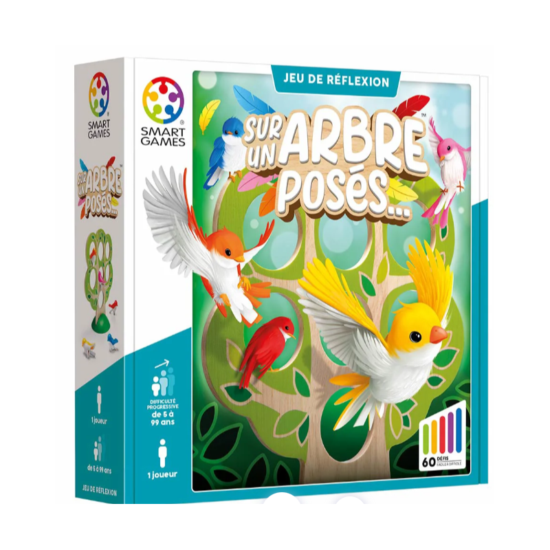 Découvrez le jeu Sur un arbre posés de SmartGames, un jeu de logique pour les enfants dès 5 ans avec 60 défis à relever. Un jeu de réflexion qui fera s'envoler l'esprit de déduction des petits comme des grands.