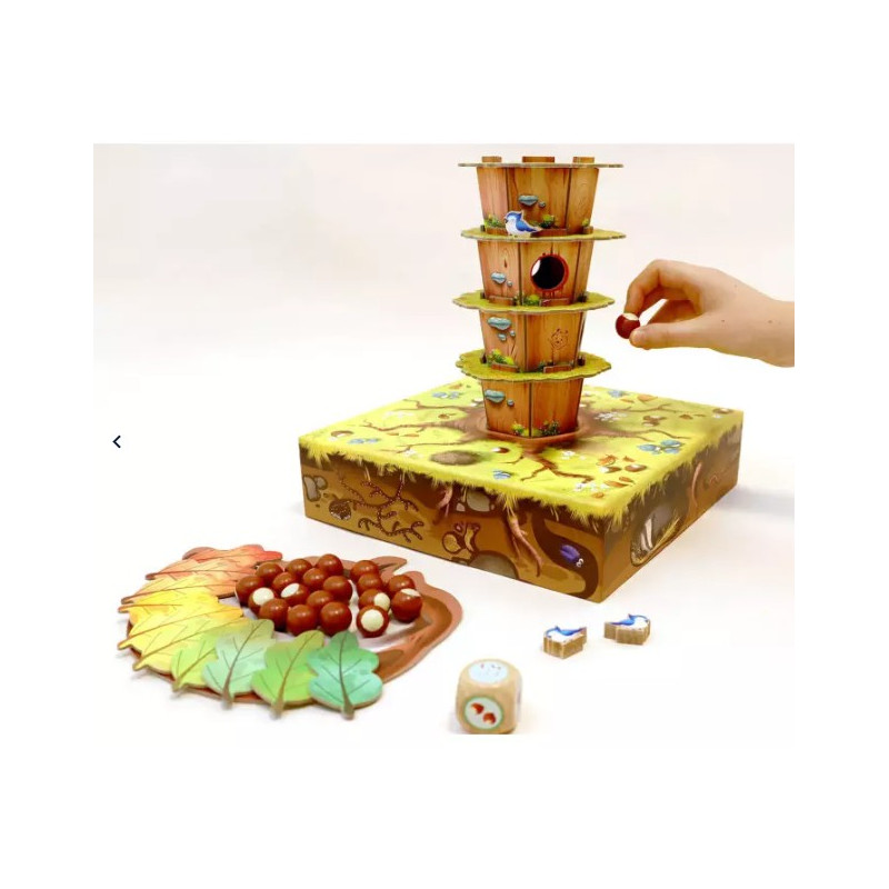 Dans ce jeu, l'hiver approche, et les écureuils ont besoin d'aide pour récupérer leurs noisettes volées par une belette endormie au pied de l'arbre. Ce jeu captivant encourage la coopération et la résolution de problèmes, tout en offrant un moment de partage en famille ou entre amis.