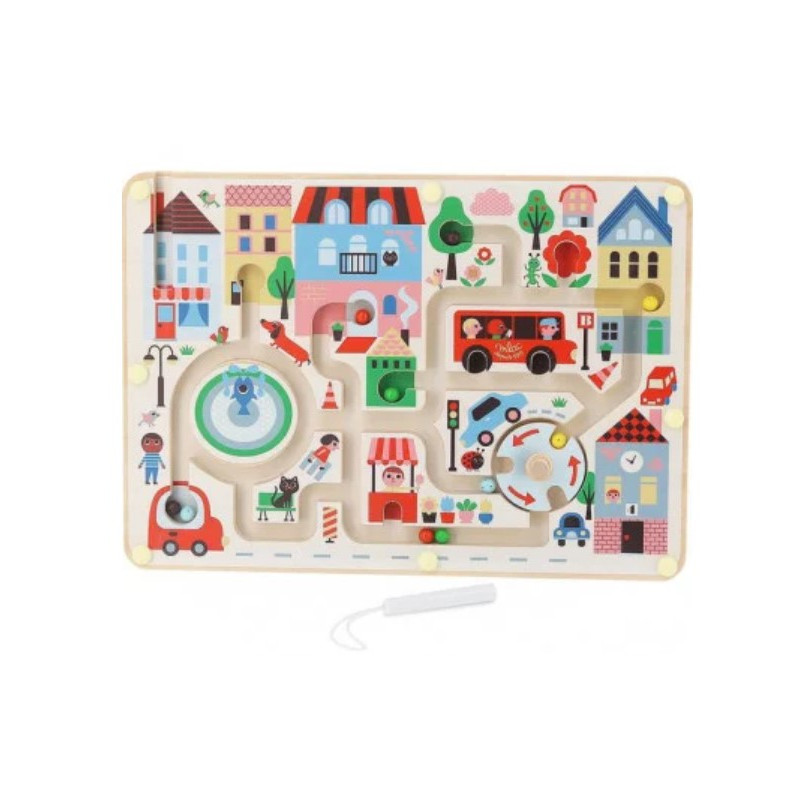 Découvrez le labyrinthe magnétique Ma petite ville de Vilac, un magnifique jouet d'éveil en bois dessiné par Ingela P.Arrhenius, pour les enfants dès 2 ans.