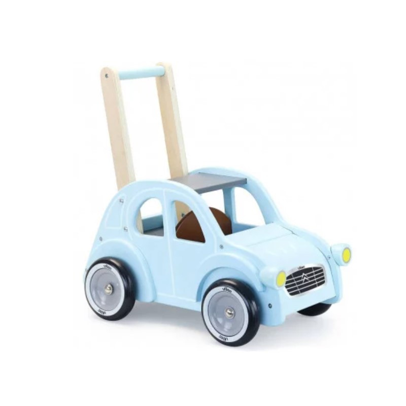 Découvrez le chariot de marche CITROEN 2CV de Vilac pour les enfants à partir de 1 an, un magnifique chariot de marche en bois en forme de voiture, la mythique voiture 2CV de Citroën.