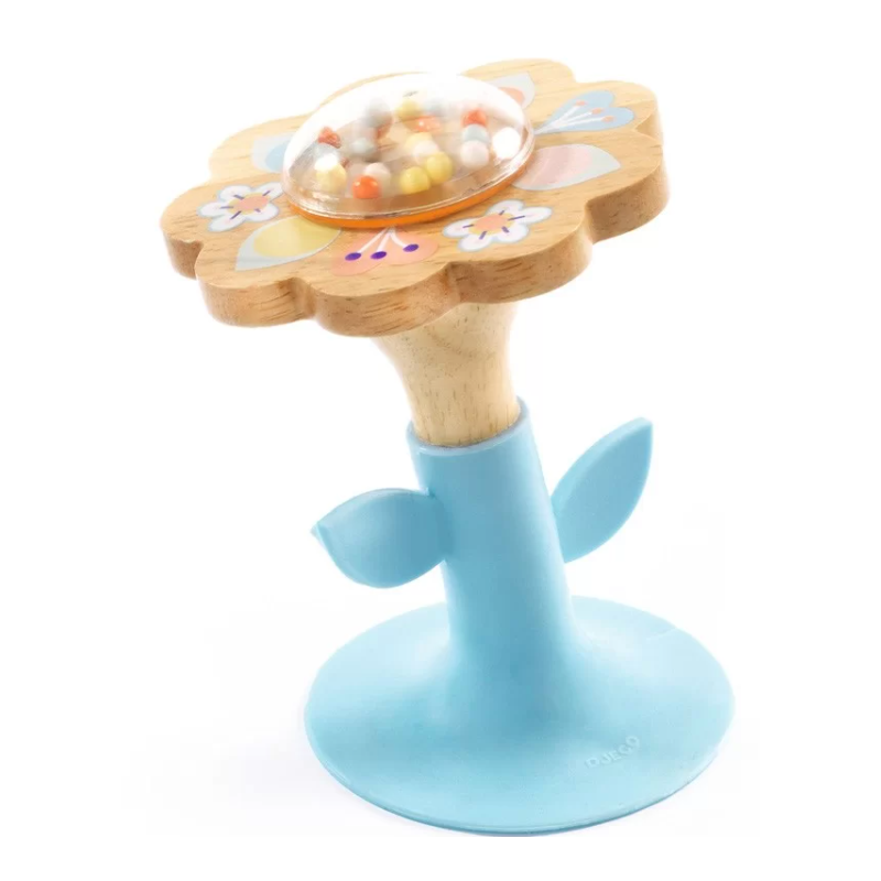 Une fleur en bois naturel et un cœur transparent grâce auquel votre bébé pourra observer les petites billes colorées. En tournant sur elle-même, la fleur fera retentir le bruit des billes. L'enfant pourra s'amuser à tapoter la fleur sans la faire tomber grâce à la ventouse.