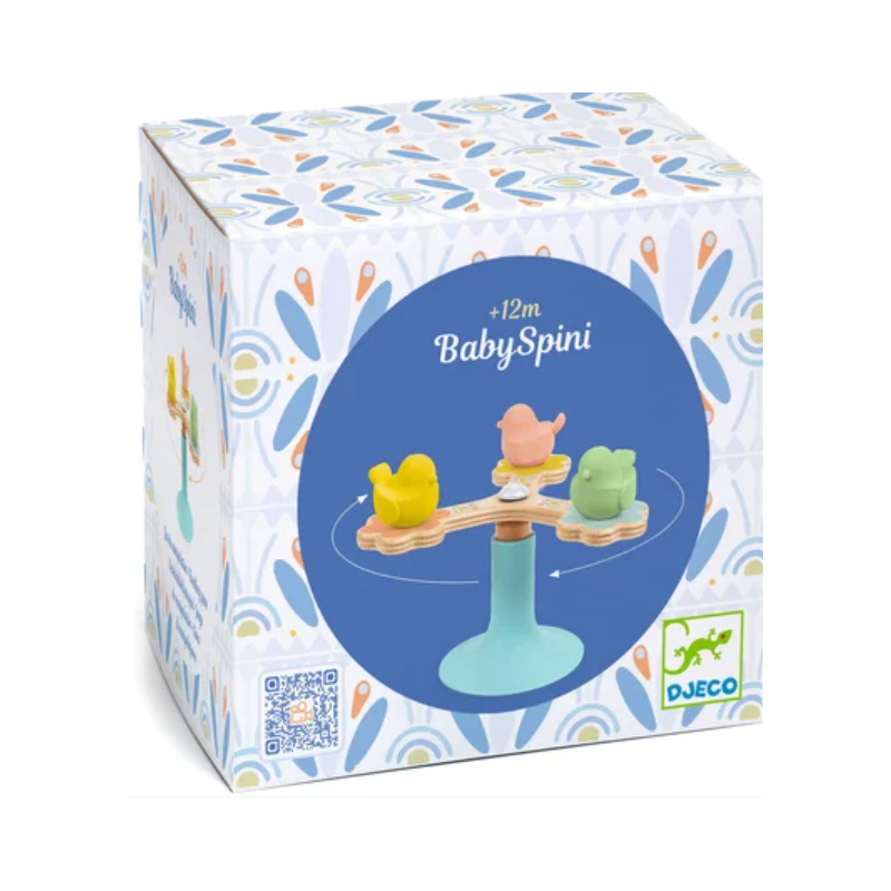 Découvrez BabySpini de la collection "Baby White" de Djeco, un jouet d'éveil rotatif aux douces teintes pastel, un jouet fabriqué en bois naturel conçu pour les enfants dès 12 mois.