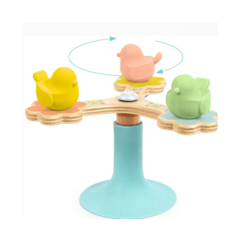 En donnant une simple impulsion de la main, l'enfant active le mouvement fascinant de trois adorables oiseaux qui virevoltent avec grâce.