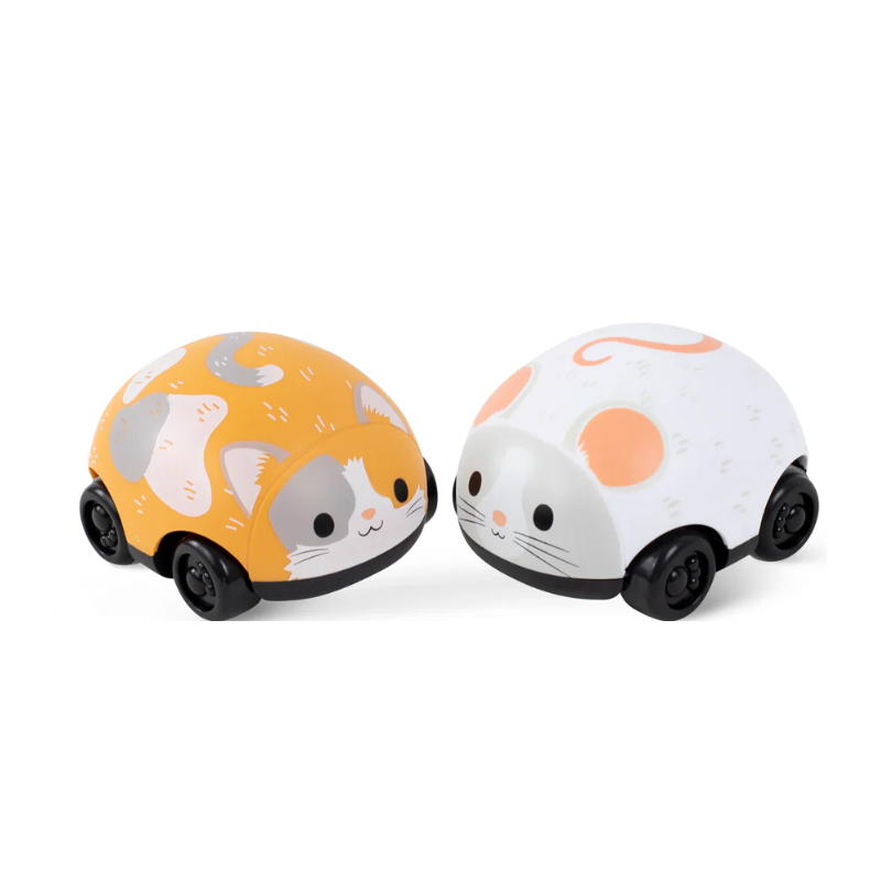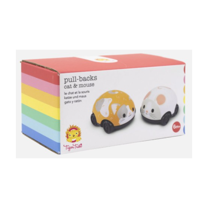 Comprend 1 jouet pour chat et 1 jouet pour souris dans chaque boîte Chat et souris Pull-backs : Fait la course d’avant en arrière avec un mouvement de traction vers l’arrière Encourage la motricité globale et les capacités de suivi visuel.