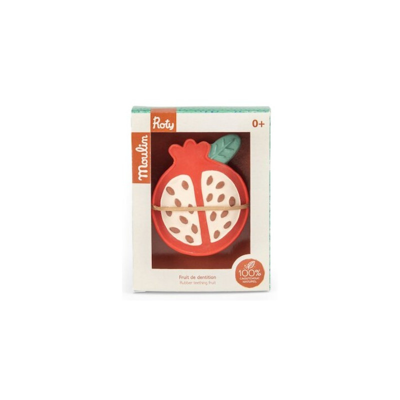 Découvrez le Fruit de dentition de la collection La forêt Mawa de Moulin Roty, un jouet de dentition en caoutchouc 100% naturel, issu de la sève d'Hévéa.