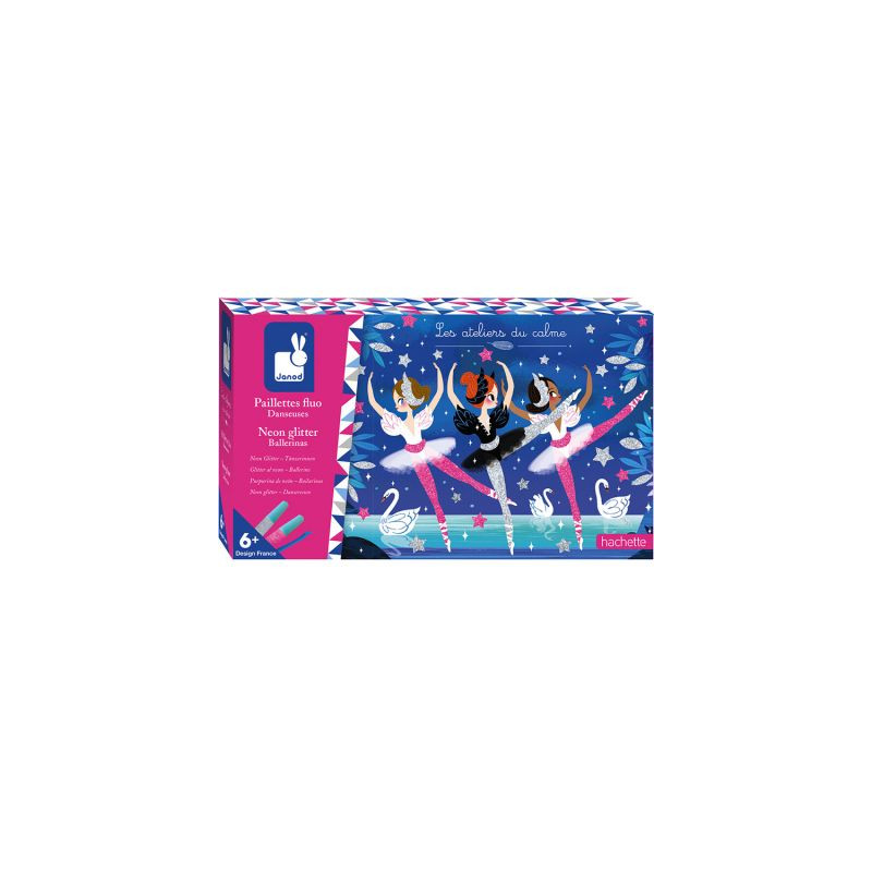 Découvrez le coffret créatif Paillettes fluo danseuses de la collection Les ateliers du calme de Janod, une activité manuelle avec des paillettes sur le thème de la danse pour les enfants à partir de 6 ans. 3 cartes à décorer pour un effet paillettes spectaculaire