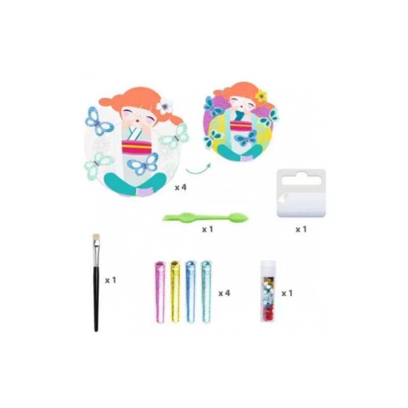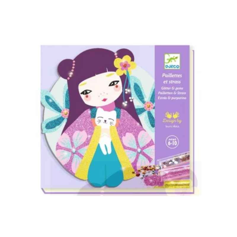 Découvrez le coffret Paillettes et strass Onnanoko de Djeco, une activité créative et ludique, dans laquelle les enfants de 6 à 10 ans s'amuseront à illuminer des tableaux silhouettés, à l'aide de paillettes et de petits strass.