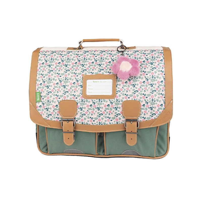 Voici le cartable Iris de Tann's fusionnant les deux couleurs phares de 2024 : le vert et le rose. Son esthétique ingénieuse marie habilement le motif léopard et floral, tandis que son adorable porte-clés en forme de pompon fleuri apporte une touche de charme supplémentaire. Ce cartable Tann's d'un dos de 41 cm est adapté aux classes de CE2, CM1 et CM2.
