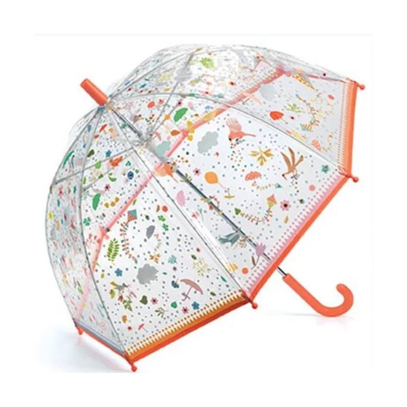 Découvrez le parapluie petites légèretés de Djeco, un magnifique parapluie illustré en plastique transparent pour égayer les jours de pluie à partir de 5 ans.