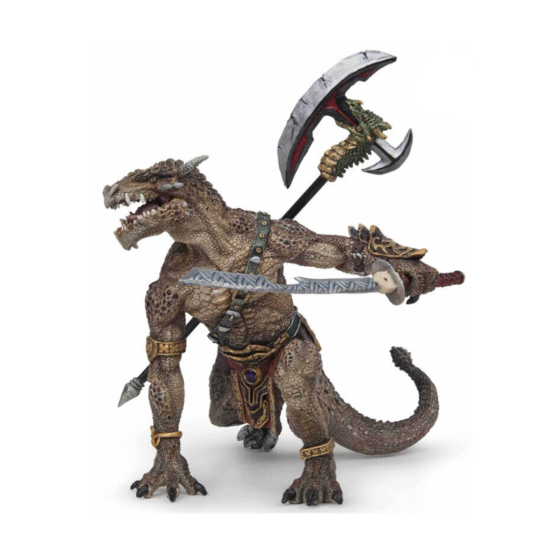 Découvrez la figurine Mutant Dragon de Papo prête à combattre ! Il porte dans son dos une immense hache à double tranchant arborant une tête de dragon.