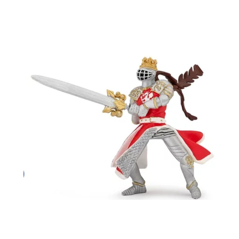 Le roi au dragon de Papo fière allure sur son cheval lancé au galop, paré de son armure d'or et d'argent. Il tient fermement son épée, prêt à se lancer dans la bataille pour défendre le royaume et repousser l'envahisseur.
