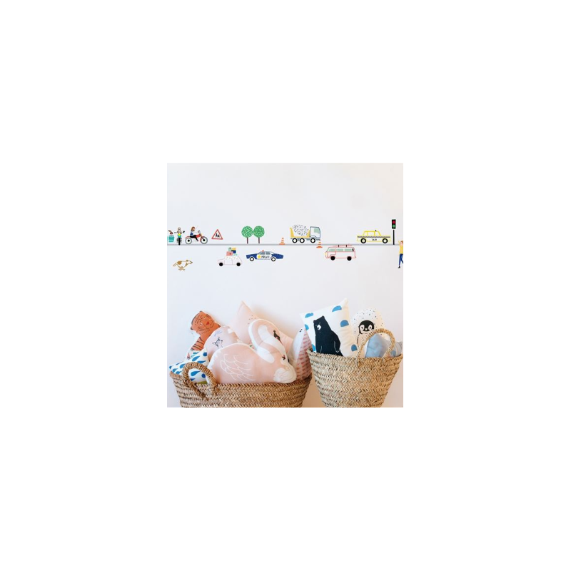 Voici la frise sticker traffic de Mimi'Lou comprenant 1 planche d'éléments à disposer sur une longueur de 5 mètres pour une belle décoration de chambre.