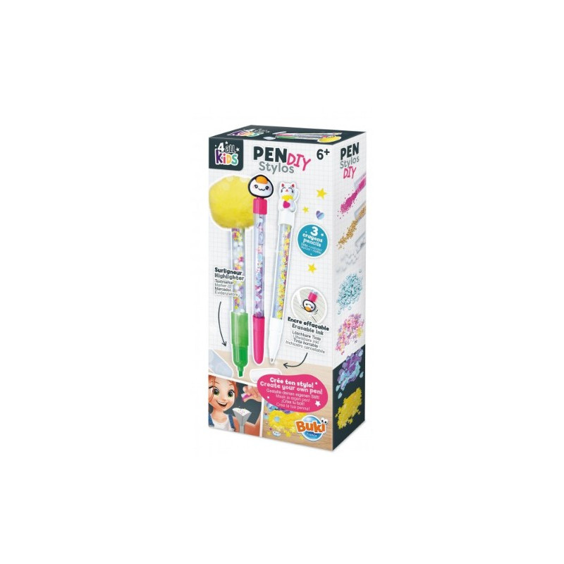 Découvrez le coffret stylos DIY Kawaii de Buki, un coffret créatif qui permet aux enfants, dès 6 ans, de customiser 3 crayons selon leurs envies.