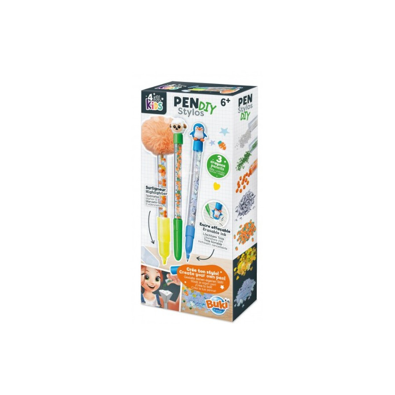 Découvrez le Coffret stylos Do It Yourself animaux de Buki, un coffret créatif qui permet aux enfants, dès 6 ans, de customiser 3 crayons selon leurs envies.