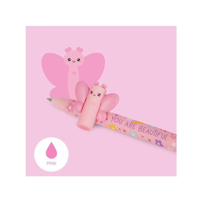 C'est en se trompant que l'on apprend. Oui, on apprend à se fier seulement et exclusivement au Stylo à Encre Gel Effaçable Papillon de Légami, le seul qui soit pourvu d'encre thermosensible permettant de faire disparaître la moindre erreur en un instant grâce à la sphère positionnée sur l'extrémité. Couleur de l'encre : rose