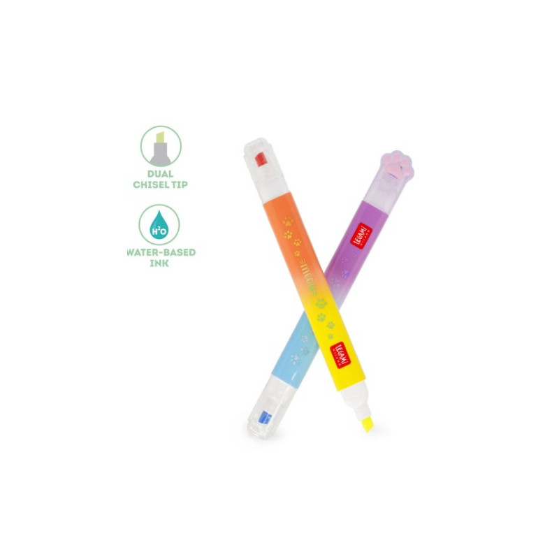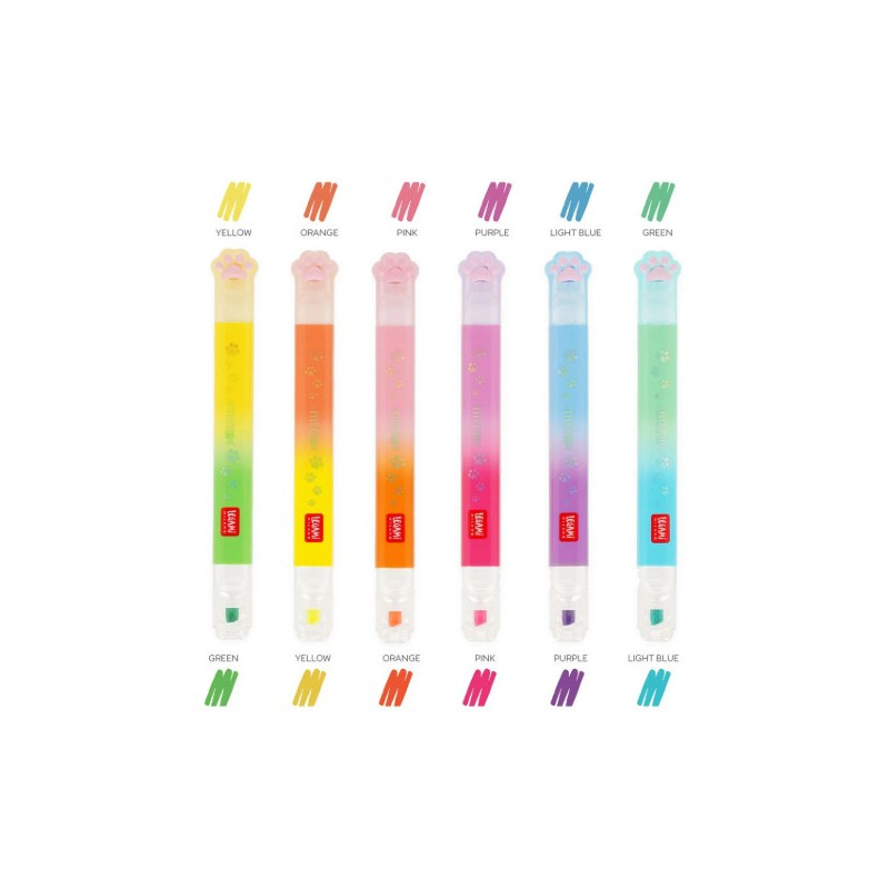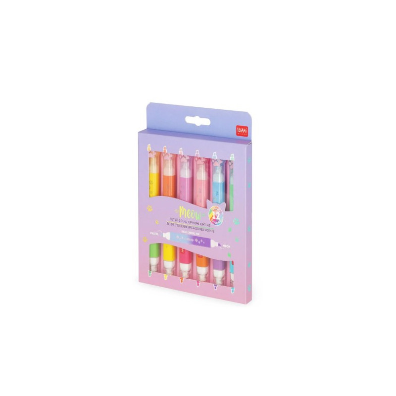 Tu veux que tes livres et cahiers débordent de couleurs ? Donne la patte ! Le Set de 6 Surligneurs à Double Pointe Pastel et Néon Meow de Légami bondira comme un chat pour surligner les infos les plus importantes et ronronnera sur chaque page de tes notes. Et oublie les neuf vies : grâce à la double pointe, tu profites de 12 couleurs pastel et néon.