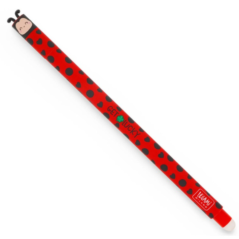 C’est en se trompant que l’on apprend. Oui, on apprend à se fier seulement et exclusivement au Stylo à Encre Gel Effaçable - Erasable Pen - Ladybug de Légami, le seul qui soit pourvu d’encre thermosensible permettant de faire disparaître la moindre erreur en un instant grâce à la sphère positionnée sur l’extrémité.